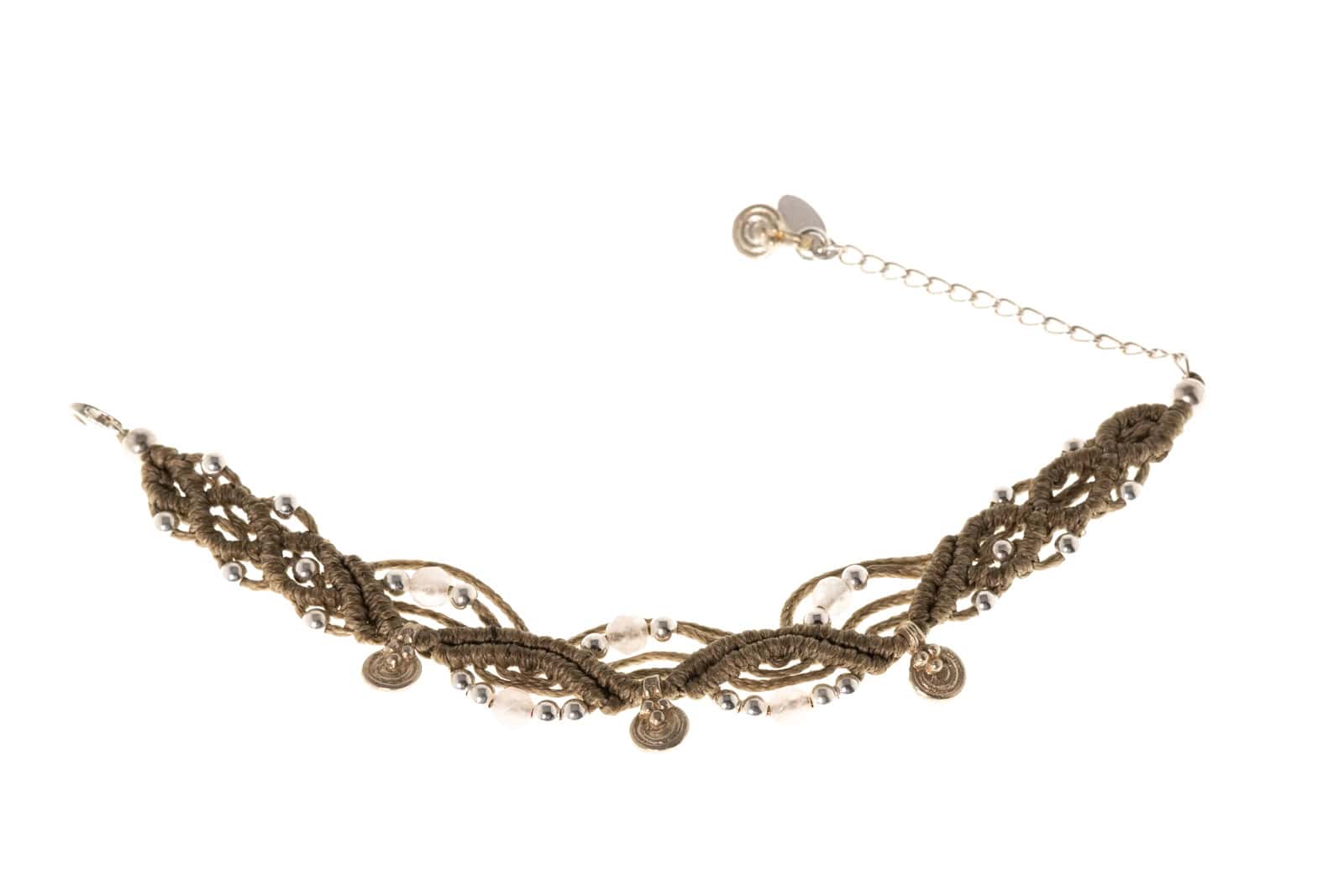 Dieses schöne Armband ist verspielt geknüpft und mit Silberperlen verziert. Das Armband ist mit dem Halbedelstein Rosenquarz und kleinen Spiralen aus Silber 925 bestückt. Das Garn der Fusskette ist Braun und passt perfekt zum Design des Armbands.