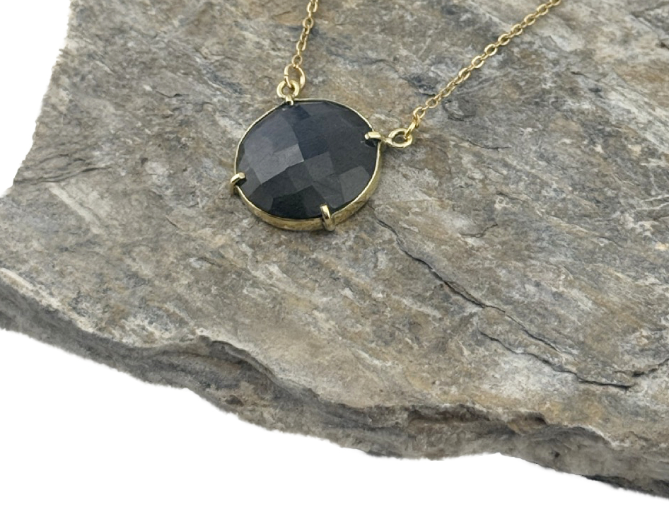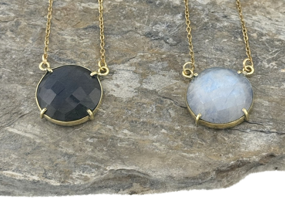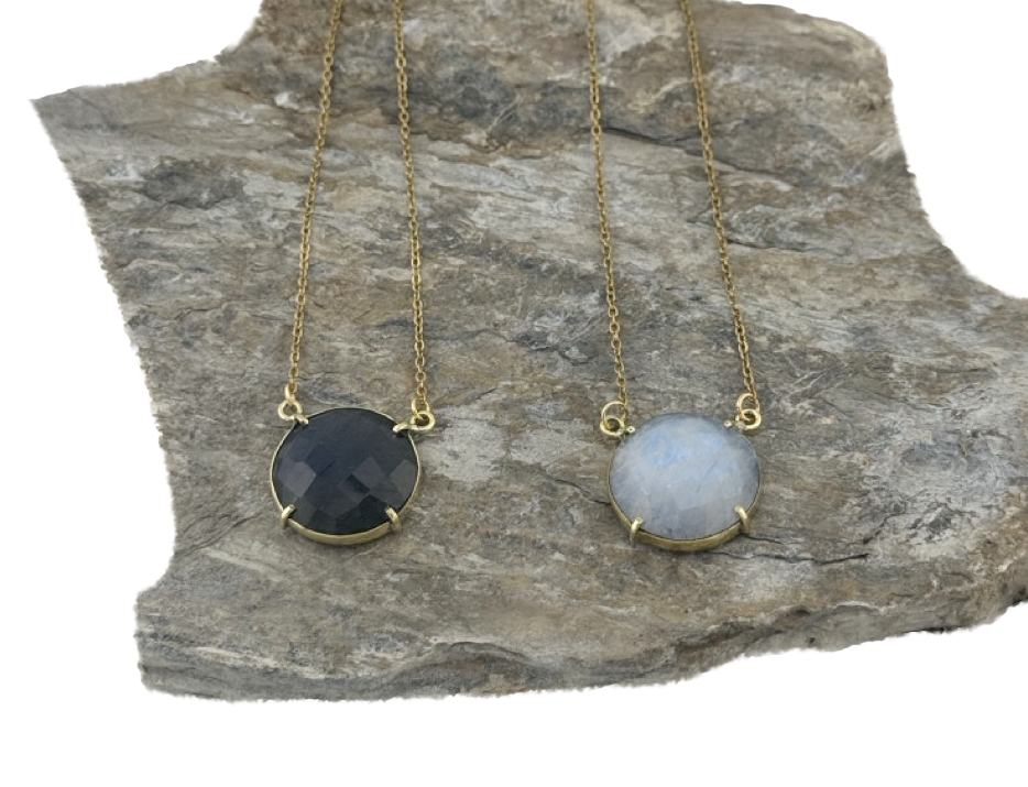 Facettierte Edelsteinkette aus Messing – Mondstein & Labradorit Varianten