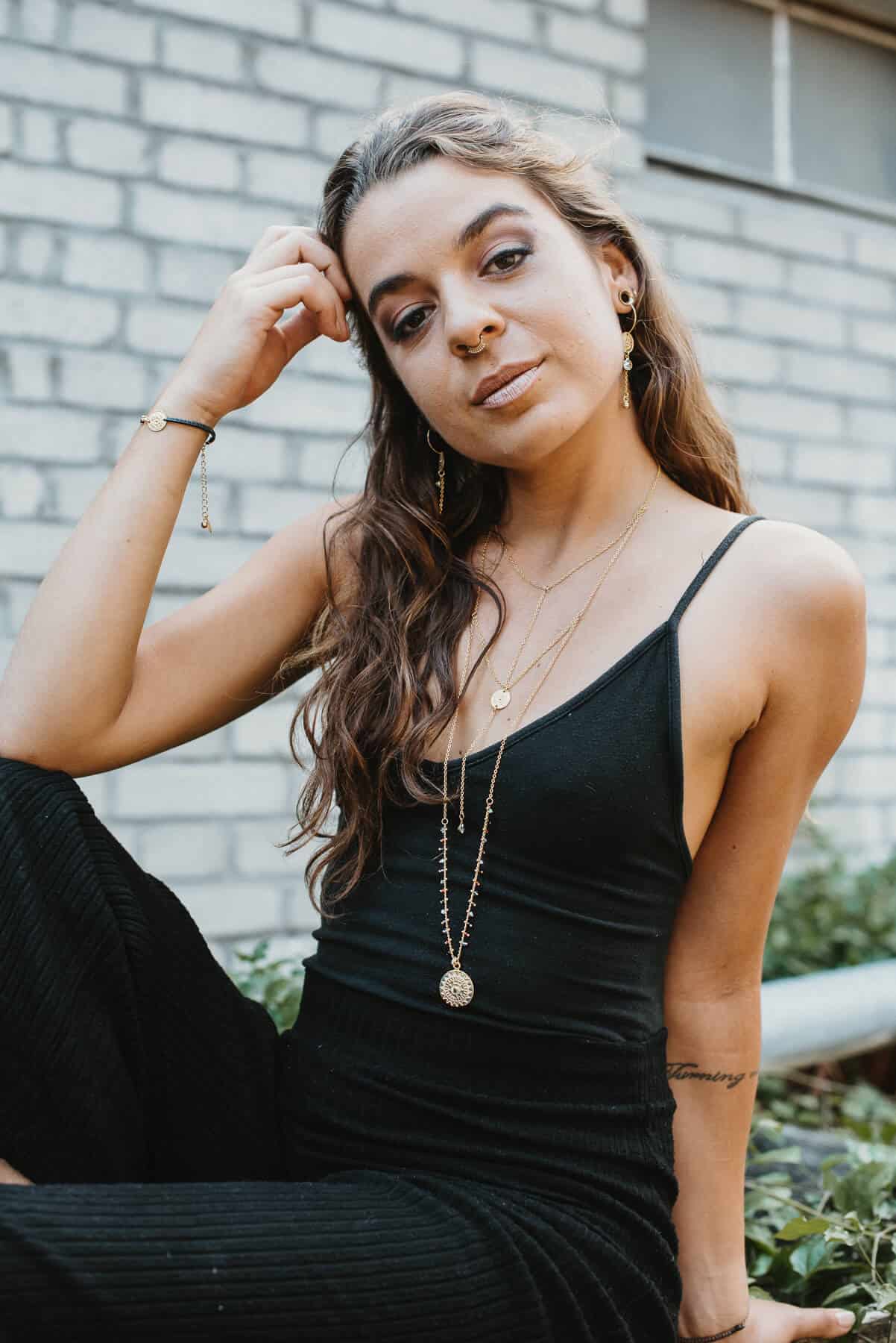Diese filigrane Layering-Kette aus Messing 24k vereint Eleganz mit modernem Boho-Stil. Sie besteht aus mehreren unterschiedlich langen Ketten, die harmonisch übereinander fallen. Feine Anhänger, darunter eine kleine runde Platte und ein Anhänger mit einer Sonne, verleihen dem Schmuckstück einen besonderen Charme. Kleine Perlen und dezente Gliederdetails setzen edle Akzente. Diese vielseitige Kette eignet sich perfekt als stilvolles Accessoire für den Alltag oder als eleganter Hingucker zu besonderen Anlässen.