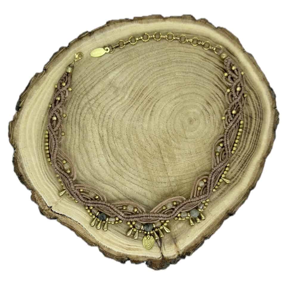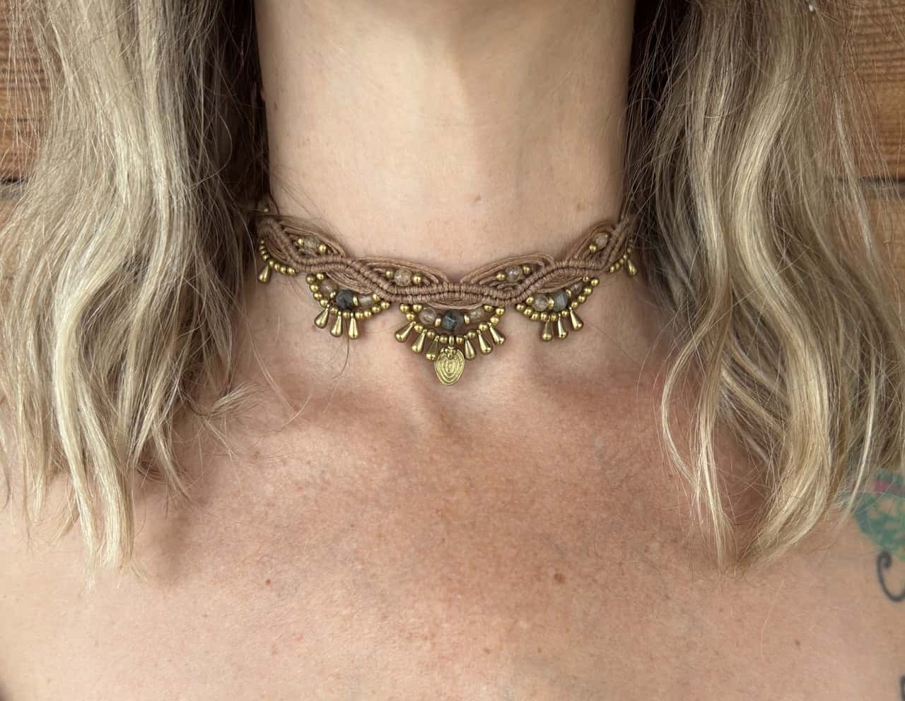 Makramee Choker „Zoe Sand“ mit den Halbedelsteinen Citrin & Labradorit