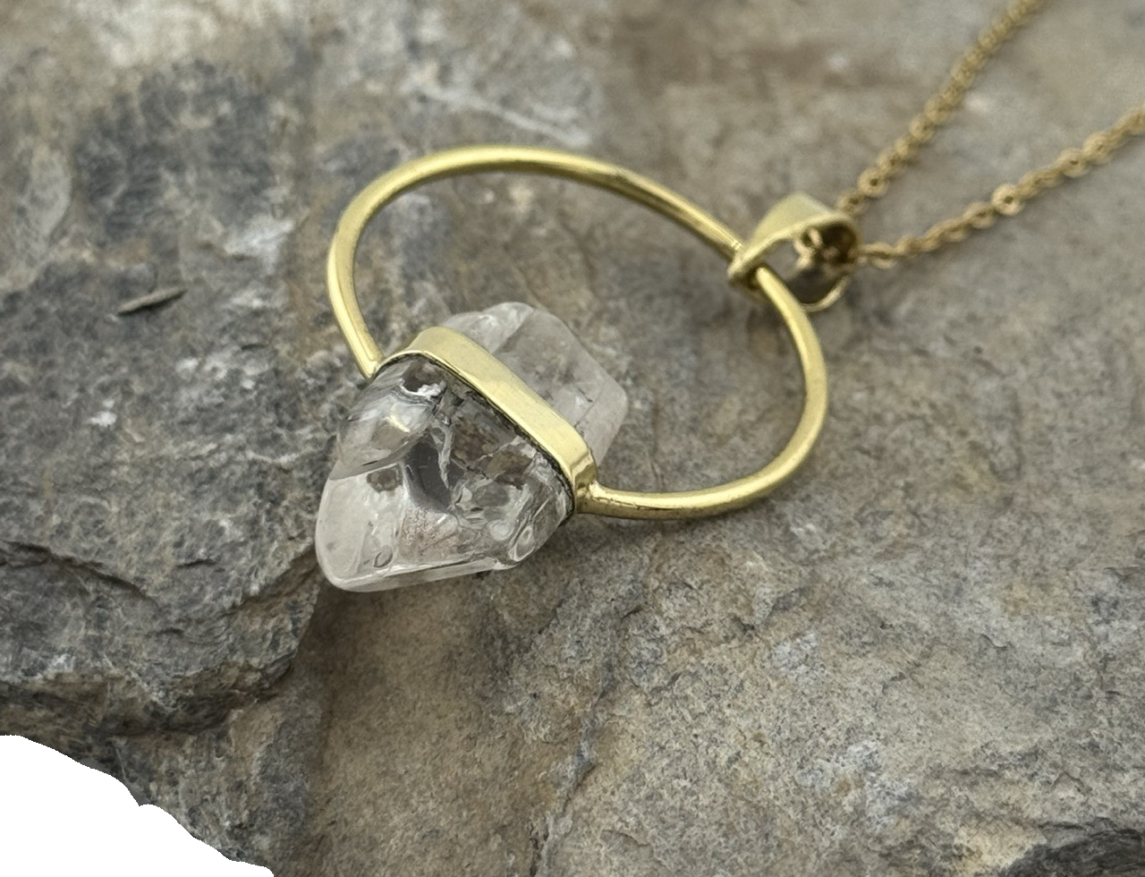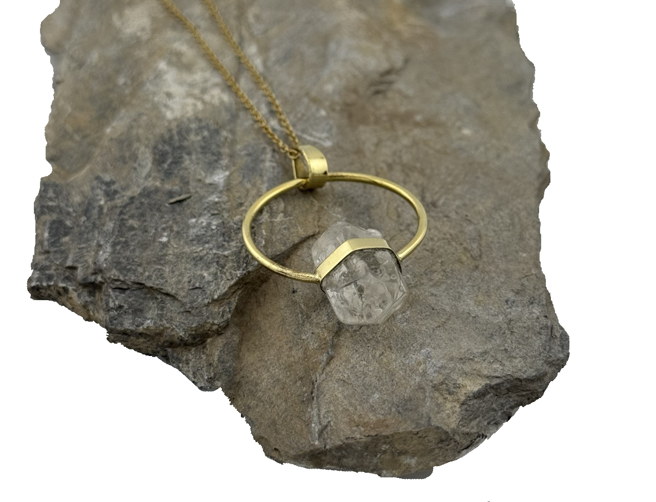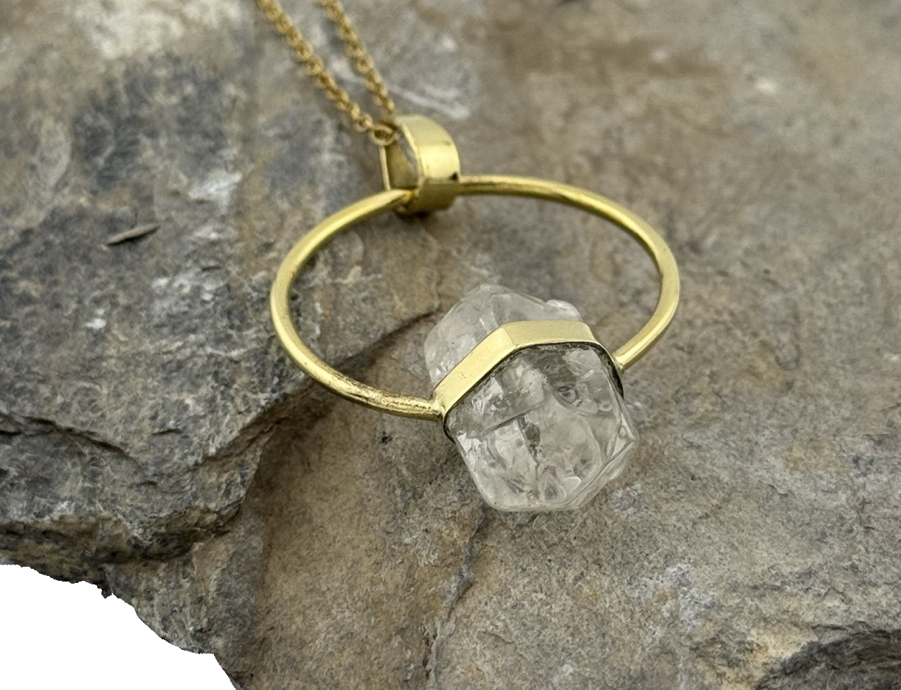 Jedes Schmuckstück wird von Hand gefertigt und mit Feingefühl vollendet. Der Anhänger aus solidem Messing wird poliert, bis er sanft glänzt und die goldene Farbe warm schimmert. Der Bergkristall wird bewusst roh belassen, um seine natürliche Struktur und Energie zu bewahren. So entsteht eine Kette, die nicht nur edel aussieht, sondern auch eine Geschichte von Handwerk und Authentizität erzählt.