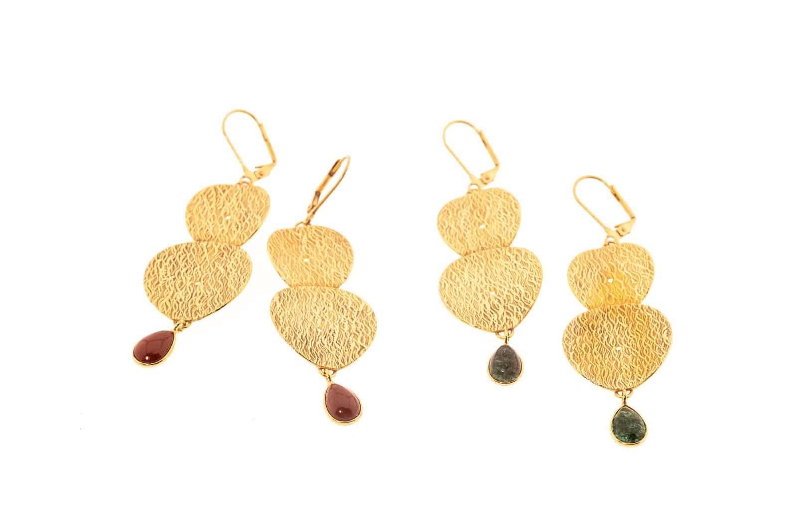 Messing Ohrring 24k Vergoldet mit Halbedelstein
