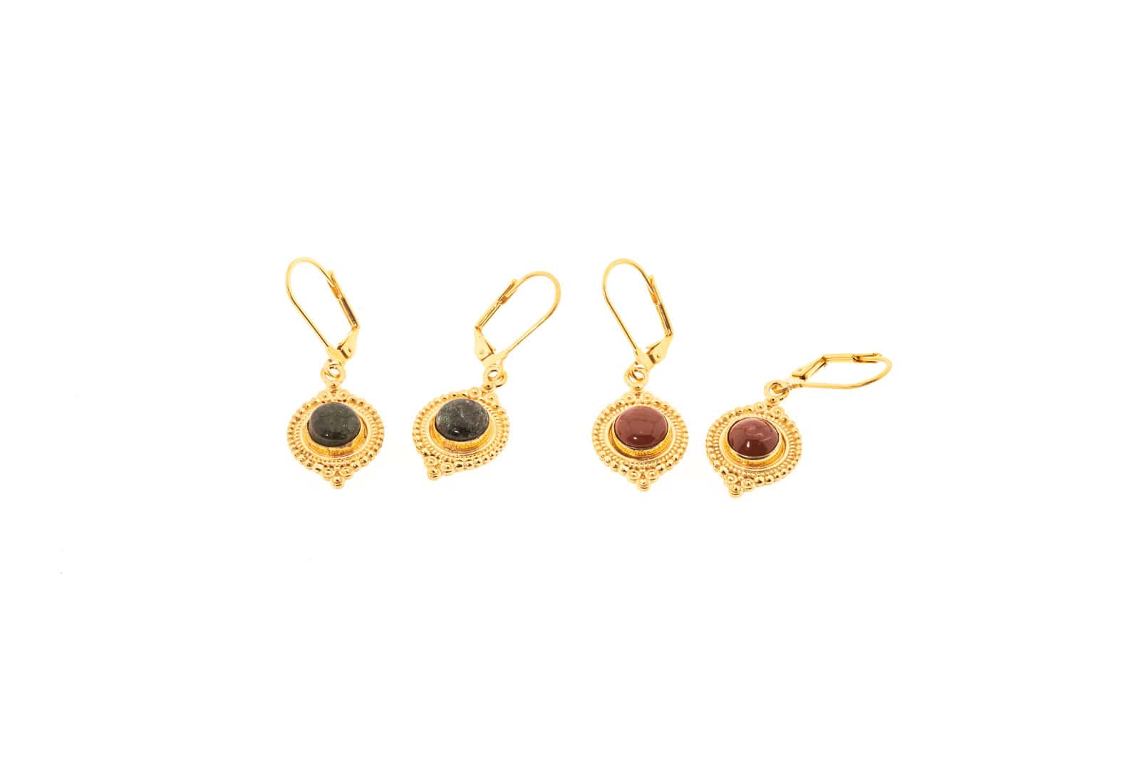 Messing Ohrring 24k Vergoldet mit Halbedelstein