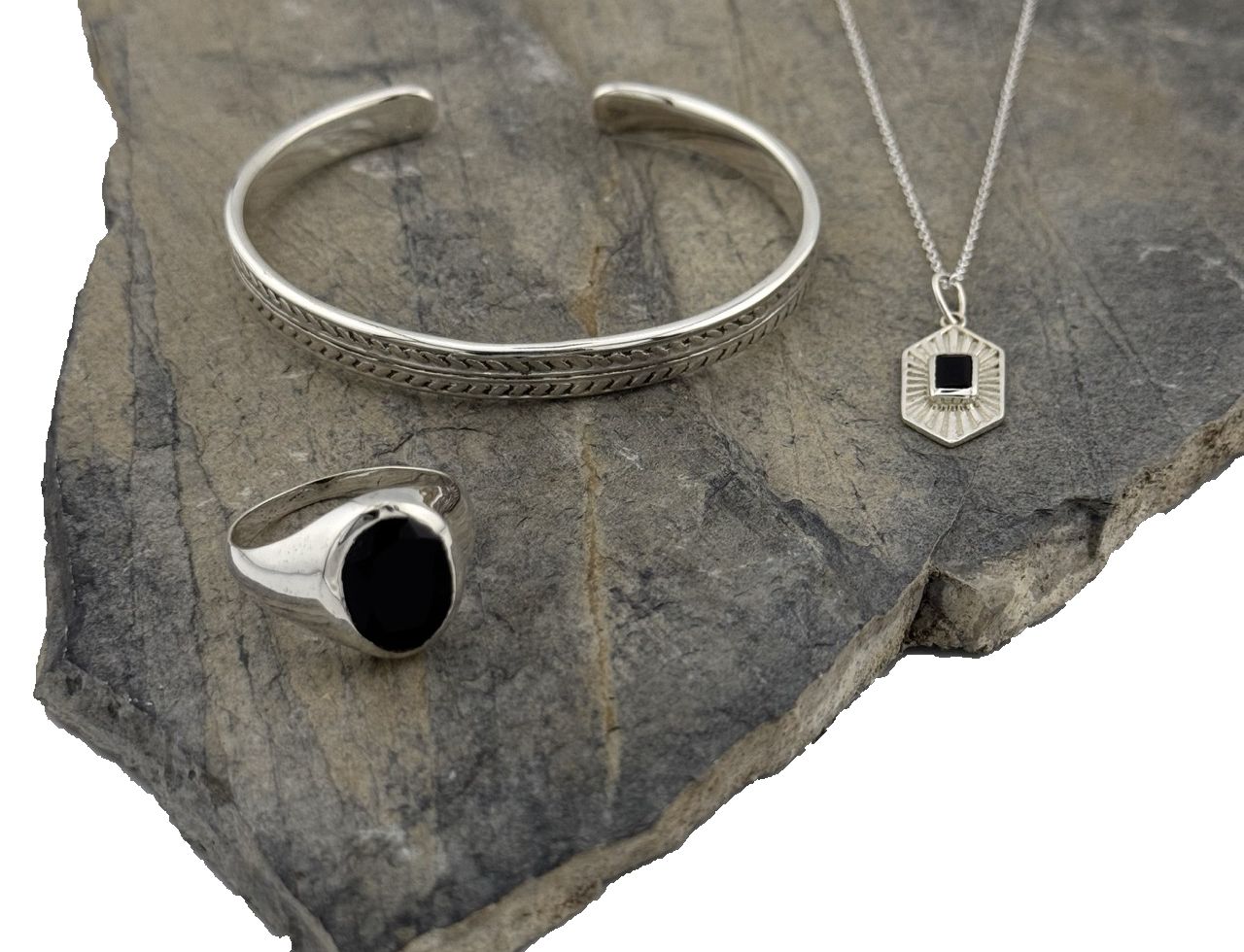 • Onyx stärkt Standfestigkeit, innere Ruhe und Selbstvertrauen. Er wirkt schützend, hilft negative Energien abzuwehren und steht für Klarheit in herausfordernden Momenten.