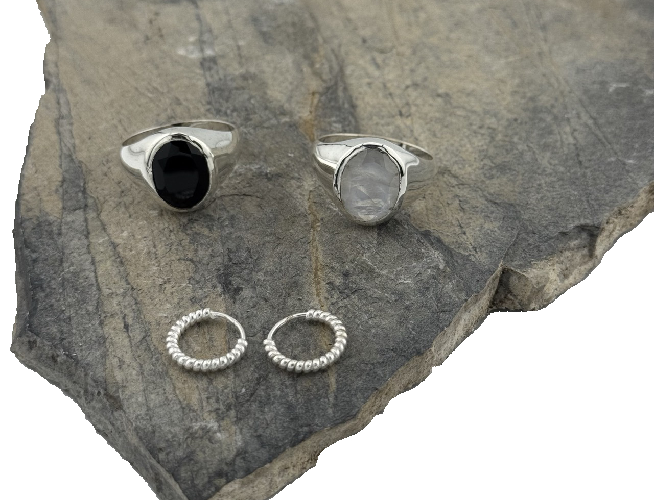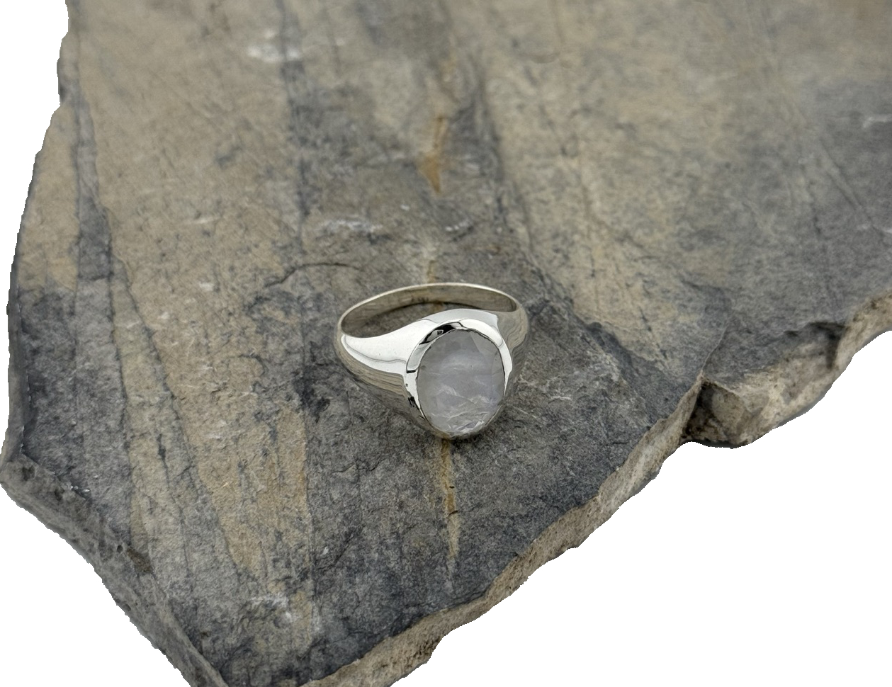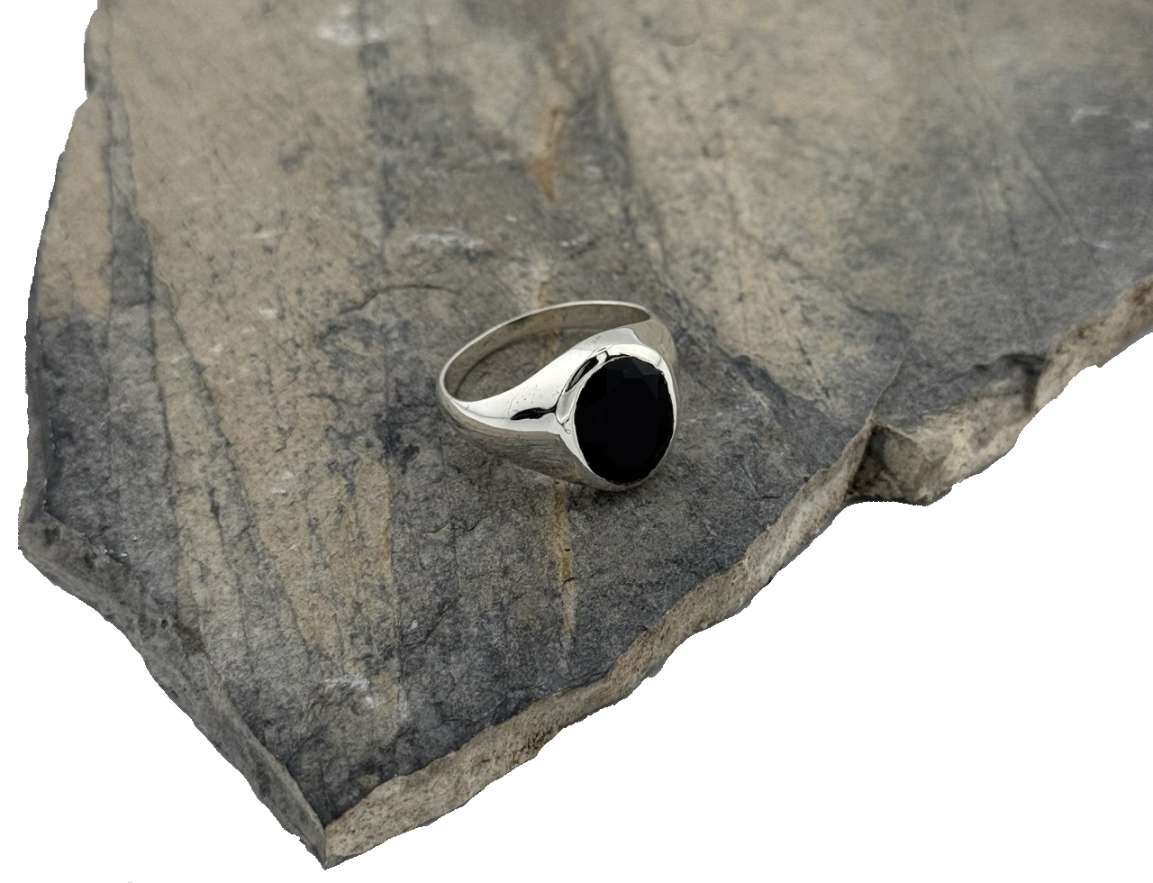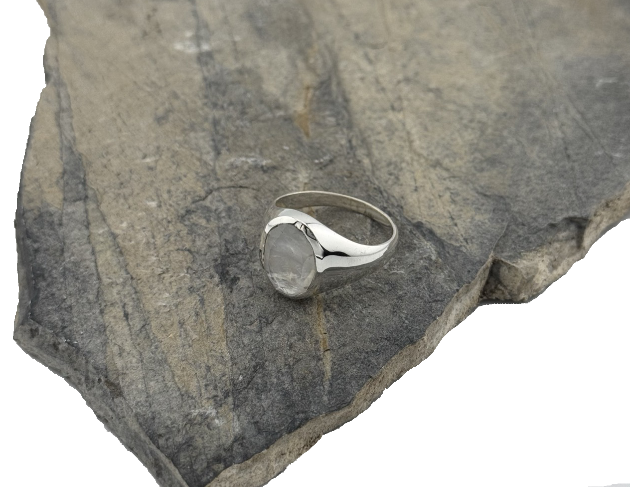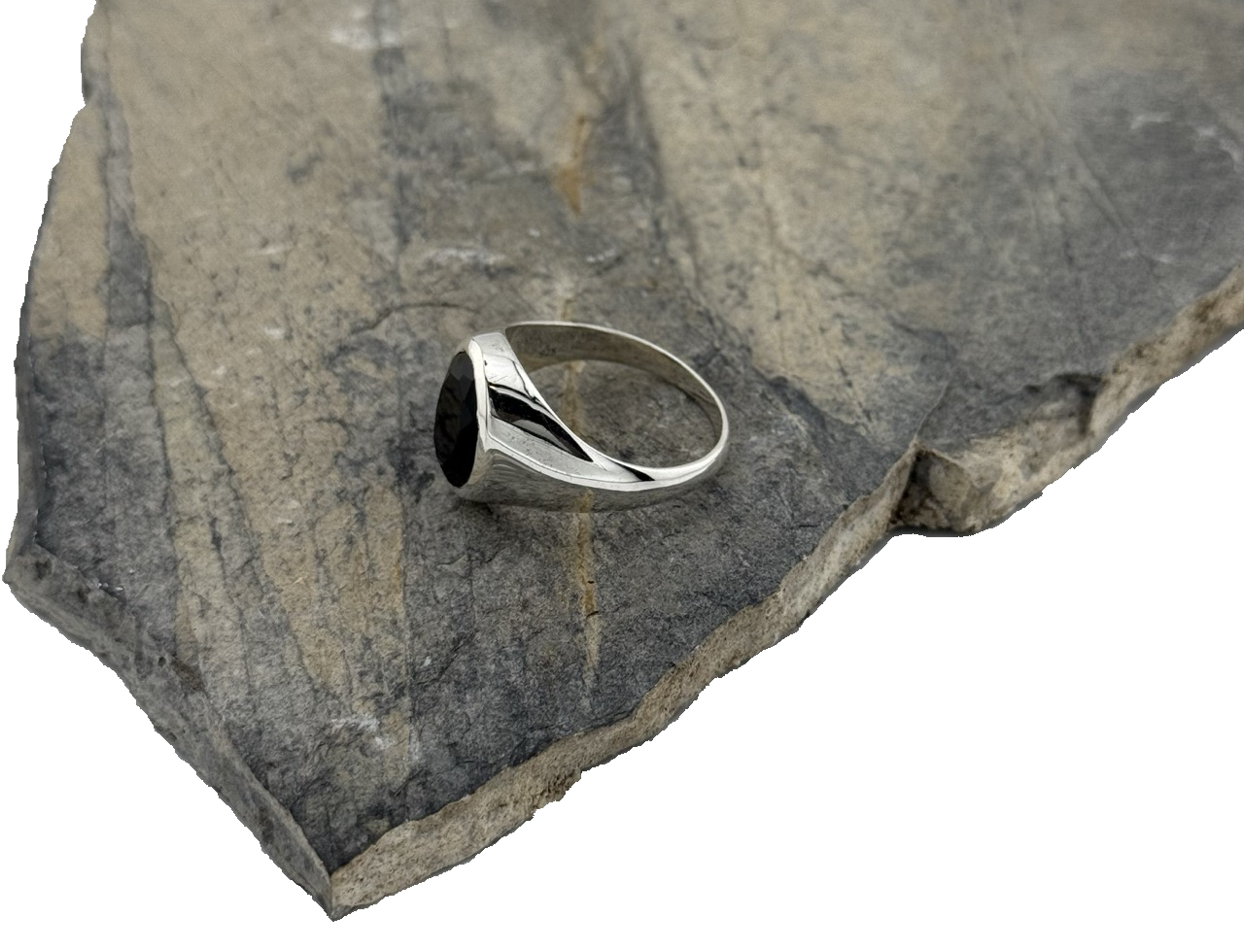 Herrenring aus 925 Silber mit Onyx oder Mondstein – handgefertigt, kraftvoll und ausdrucksstark.